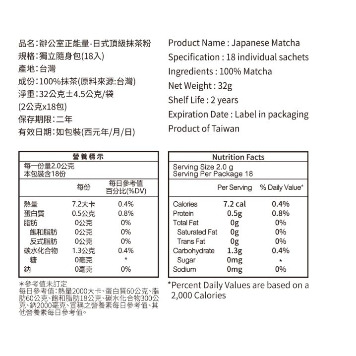 台灣茶人 辦公室正能量 日式頂級抹茶粉獨立隨身包(18入) 【小三美日】D031388單一規格Tea & Tea Bags小三美日