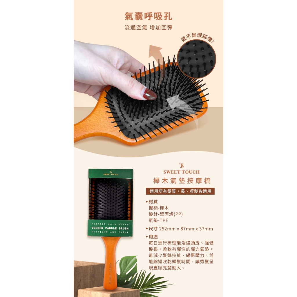 SWEET TOUCH 直覺櫸木氣墊按摩梳(1支入) 梳子 頭髮 氣墊梳 梳頭 按摩 頭皮【小三美日】DS006429單一規格Hair Tools小三美日