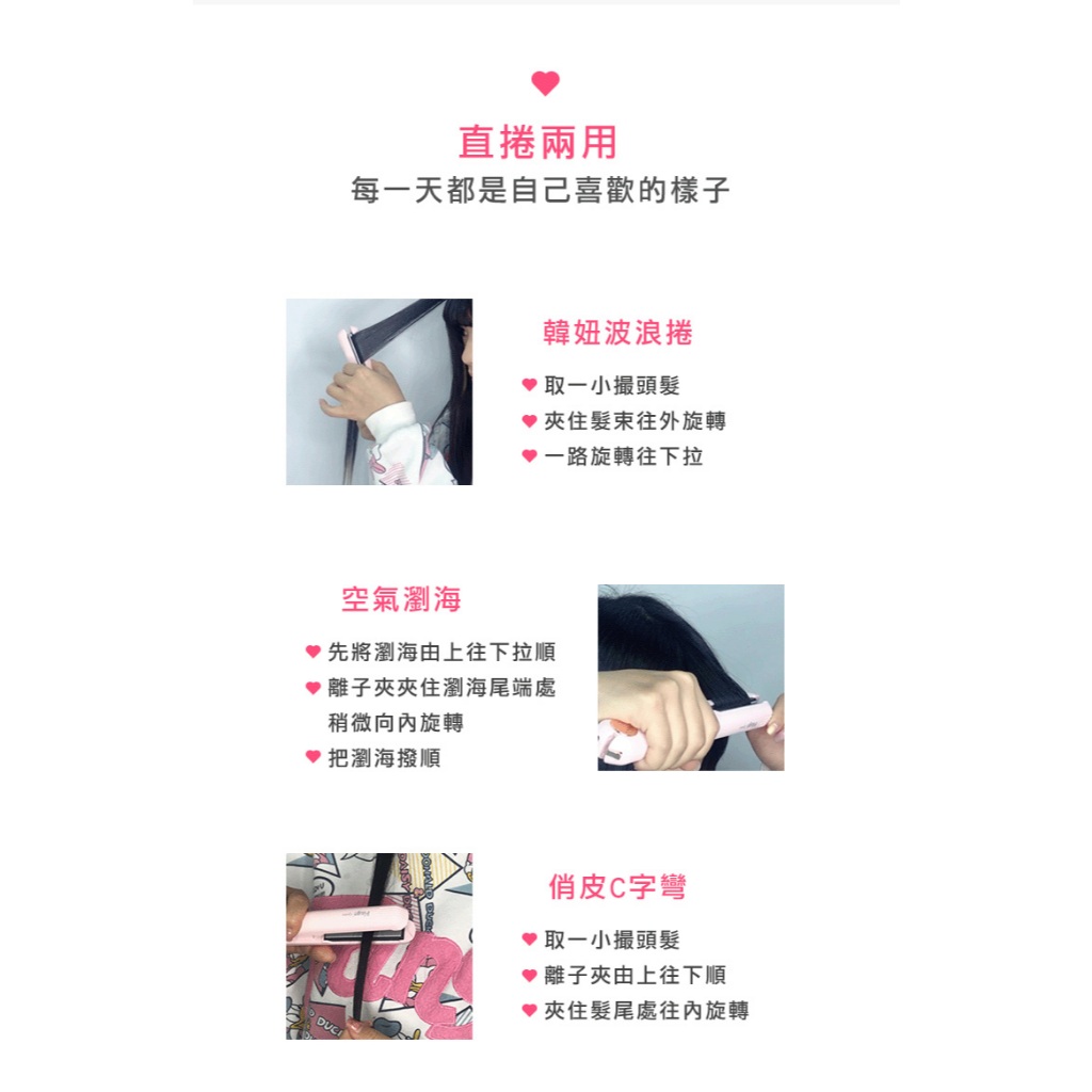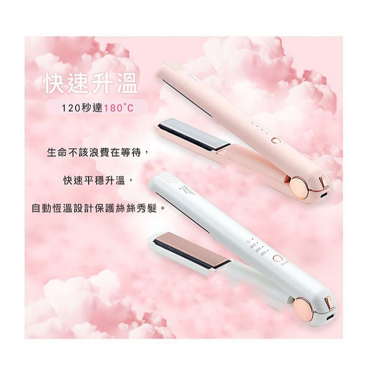 Pingo 品工 Qmini U1快充式無線迷你離子夾1支入 頭髮 髮型 直捲兩用【小三美日】空運禁送 D153603櫻花粉|白色Hair Tools小三美日