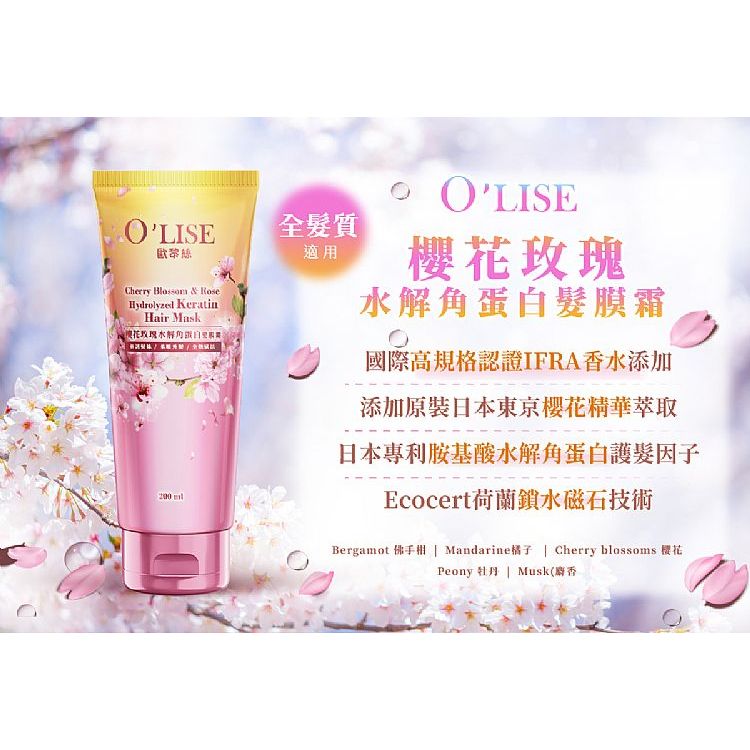 O’LISE 歐黎絲 櫻花玫瑰水解角蛋白髮膜霜(200ml) 護髮膜 美髮護理 潤髮膜【小三美日】DS023816單一Hair Treatment小三美日