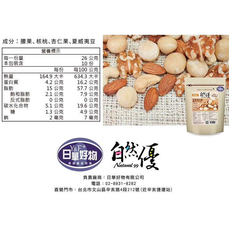 自然優 綜合堅果四寶260g 日華好物綜合堅果四寶260gNuts日華好物 / 輕靚美7日健康週-體態管理專家