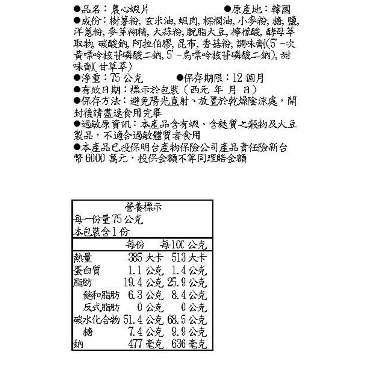 韓國 農心 蝦片(75g)【小三美日】DS004884單一規格Chips & Crisps小三美日