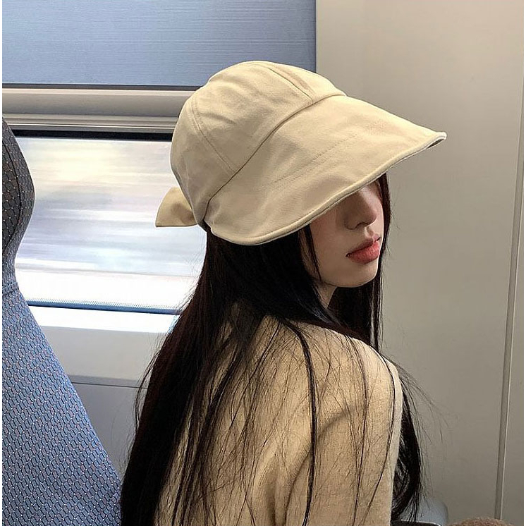 韓風蝴蝶結大帽沿遮陽帽(1入) 款式可選【小三美日】DS014329卡其|米白小三美日