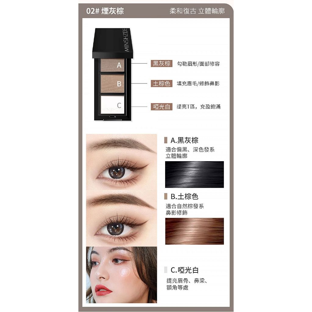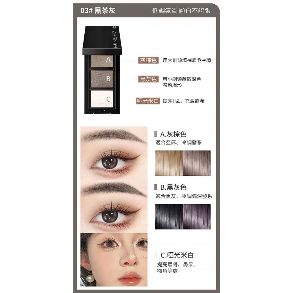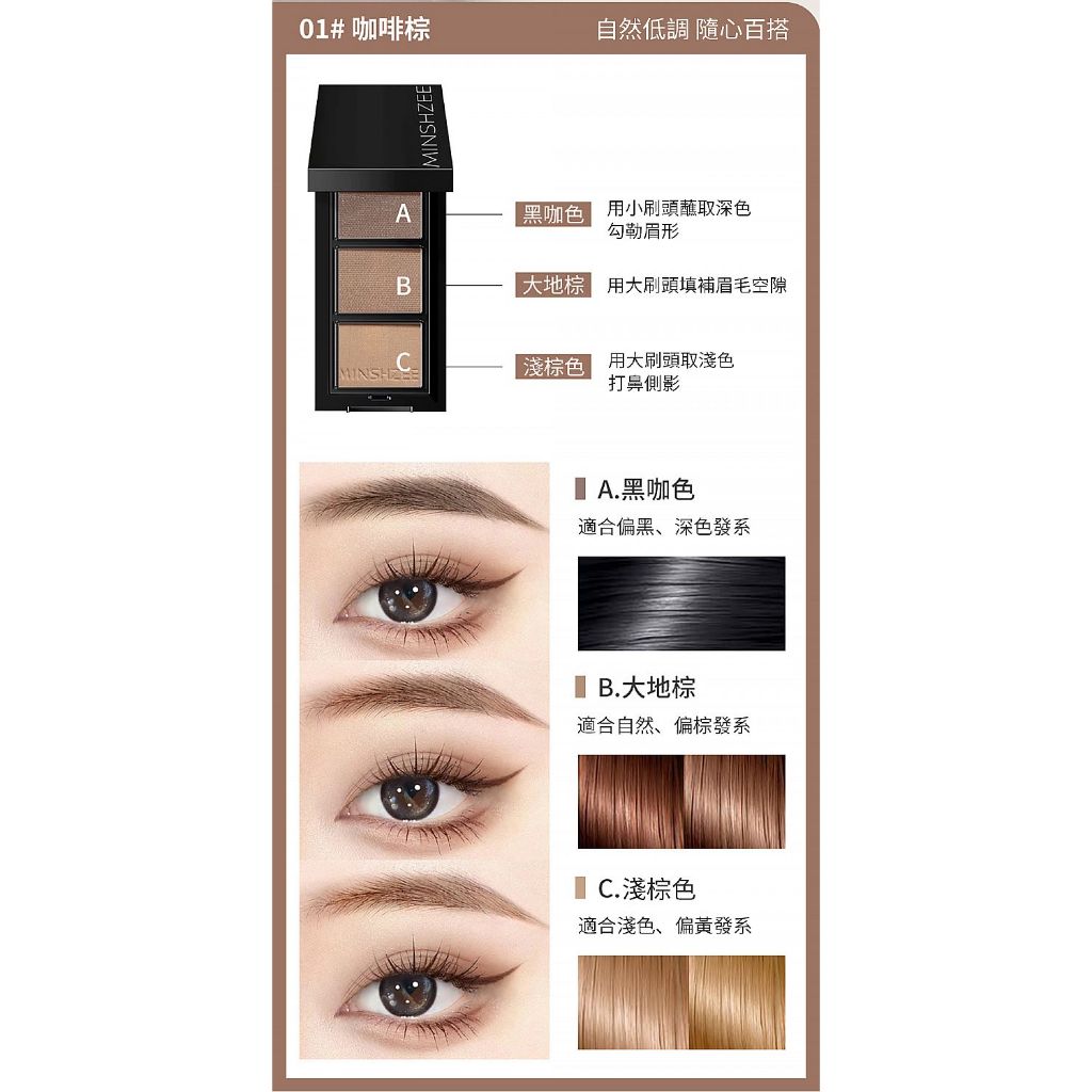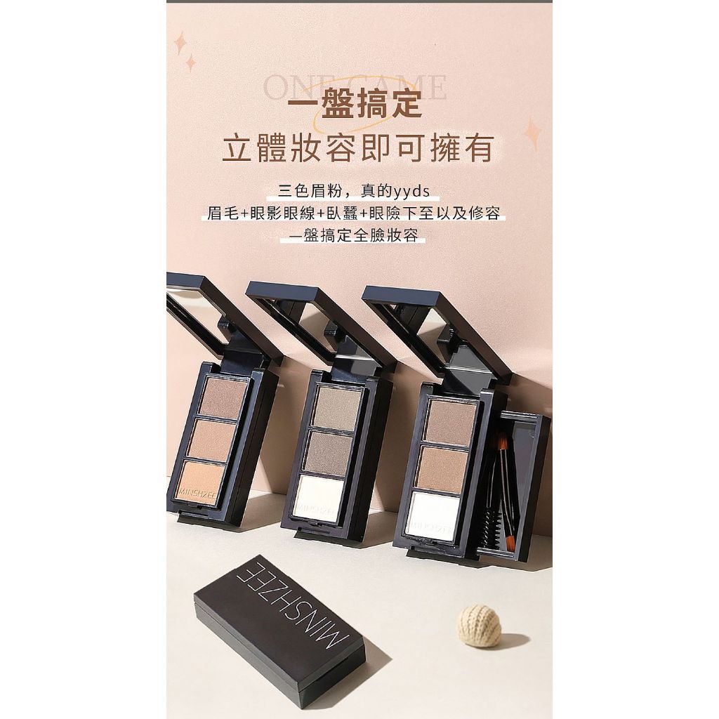 MINSHZEE 茗希芝 立體持妝三色眉粉(3.9g) 款式可選【小三美日】DS02198101咖啡棕|02煙灰棕|03黑茶棕Eyes小三美日