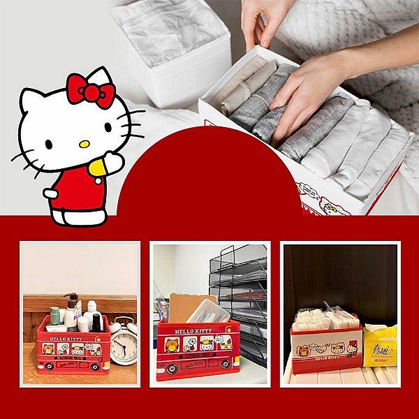 御衣坊 小款折疊式收納盒(1入) 衣物收納箱 折疊盒 收納箱 收納盒 kitty 【小三美日】DS024556紅色校車款|白色列車款Wardrobe Organizers小三美日