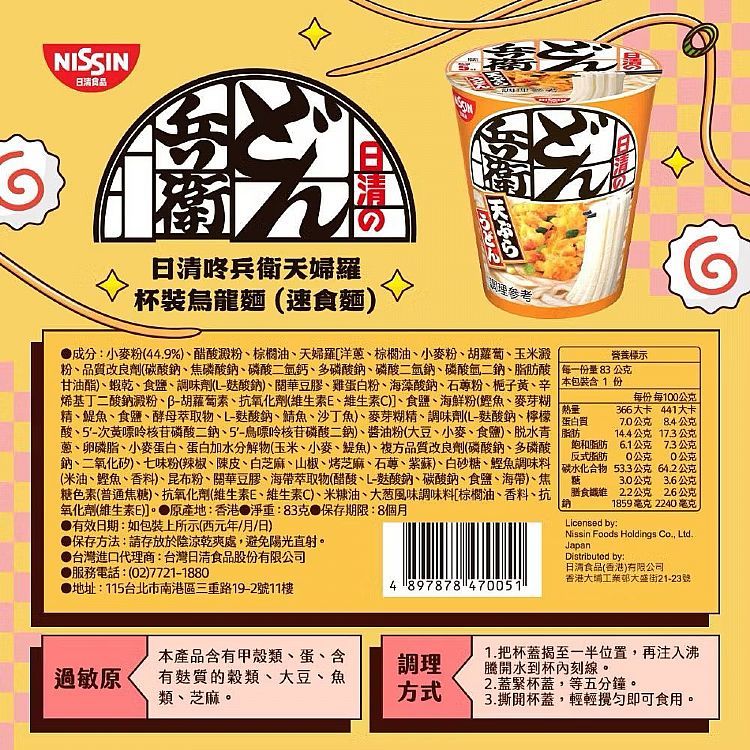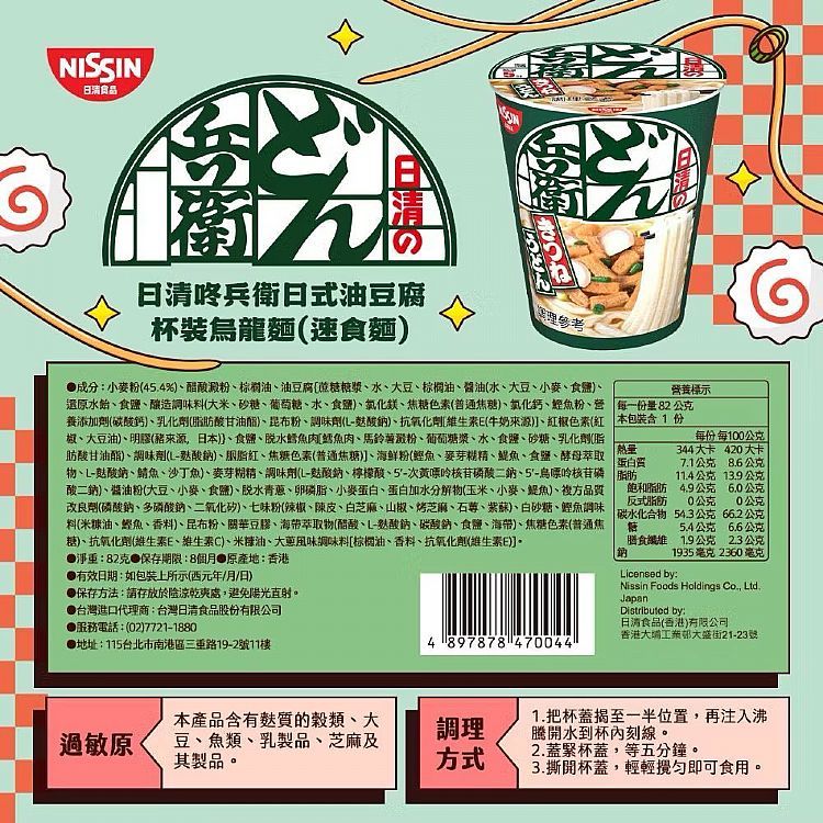 日清 咚兵衛杯裝烏龍麵(1杯) 日式油豆腐 天婦羅 杯麵 速食麵 杯烏冬 豆皮烏龍麵 泡麵 【小三美日】DS025988日式油豆腐烏龍麵|天婦羅烏龍麵Instant Noodles小三美日