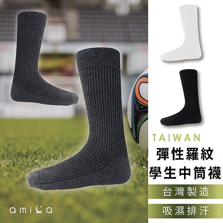AMICA 中筒襪 純色木耳邊羅紋/台製素色彈性羅紋口學生/花邊泡泡口二杠 襪子 MIT【小三美日】DS021559x