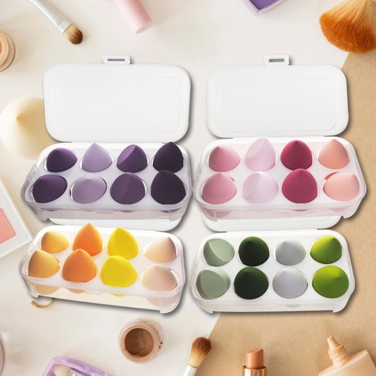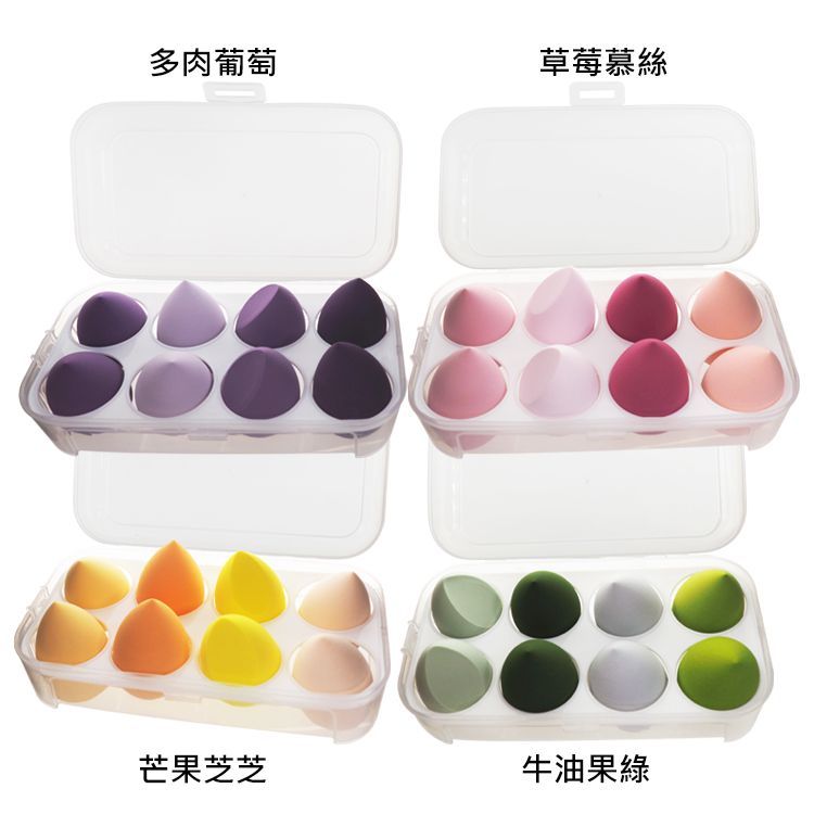 雞蛋盒水滴型美妝蛋(8入套組) 款式可選 美妝蛋 化妝海綿 上妝器具 乾濕兩用【小三美日】空運禁送 DS022987多肉葡萄|草莓慕絲|芒果芝芝|牛油果綠Makeup Accessories小三美日