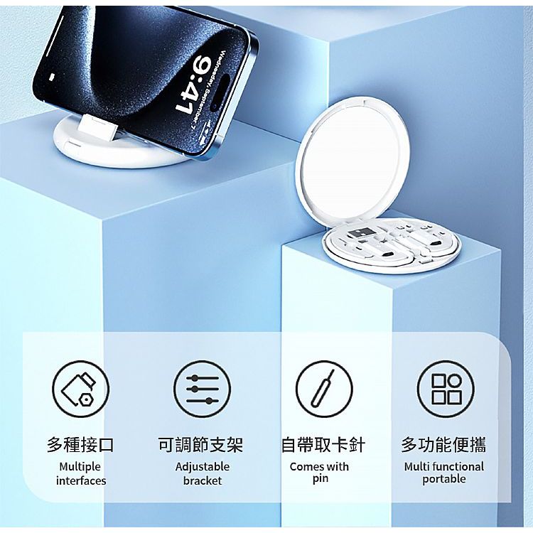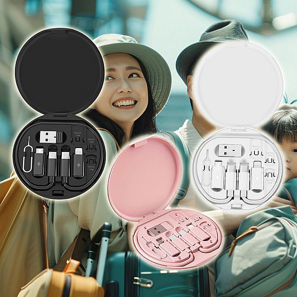 旅行便攜多功能充電線收納盒(1組入) 款式可選 黑色 白色 粉色 便攜輕巧 可調節支架 旅遊【小三美日】DS025057黑色|白色|粉色Travel Organizers小三美日