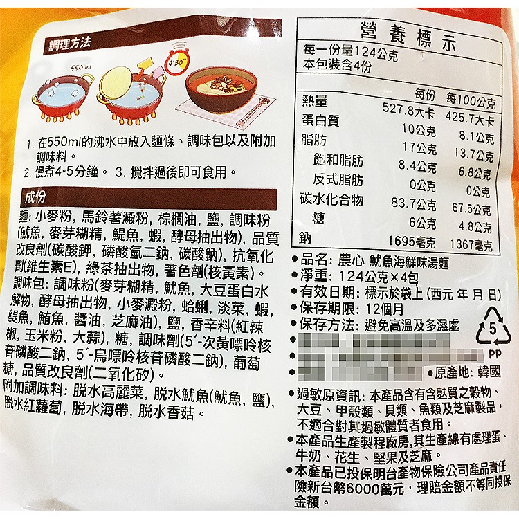 韓國 農心 魷魚海鮮味湯麵4入(整袋裝) 【小三美日】泡麵/進口/ 團購 炒瑪麵 D158218單一款式Instant Noodles小三美日