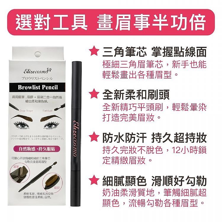 Elizecosmo 兩用眉筆(0.2g) 款式可選 彩妝 美妝 眼妝 自然棕色 優雅黑色【小三美日】DS024461自然棕色|優雅黑色Eyes小三美日