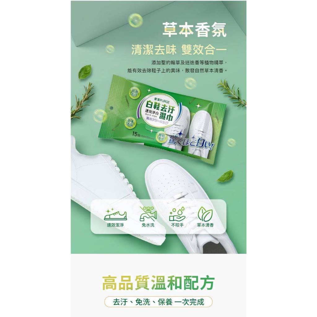 PURGE 普潔 白鞋去汙濕巾(15抽) 白鞋清潔 擦鞋 擦鞋濕紙巾 小白鞋清潔 清潔擦拭巾【小三美日】DS022043單一Shoe Care & Cleaning Tools小三美日