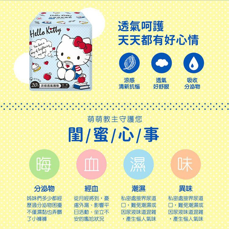 HelloKitty涼感 透氣護墊/萌萌衛生棉(日用)/甜睡衛生棉(夜用特長)1包入款式可選【小三美日】DS001846涼感透氣護墊15.5cm(20入)|涼感萌萌衛生棉-日用24.5cm(8入)|涼感甜睡衛生棉-夜用特長34cm(5入)Feminine Care小三美日