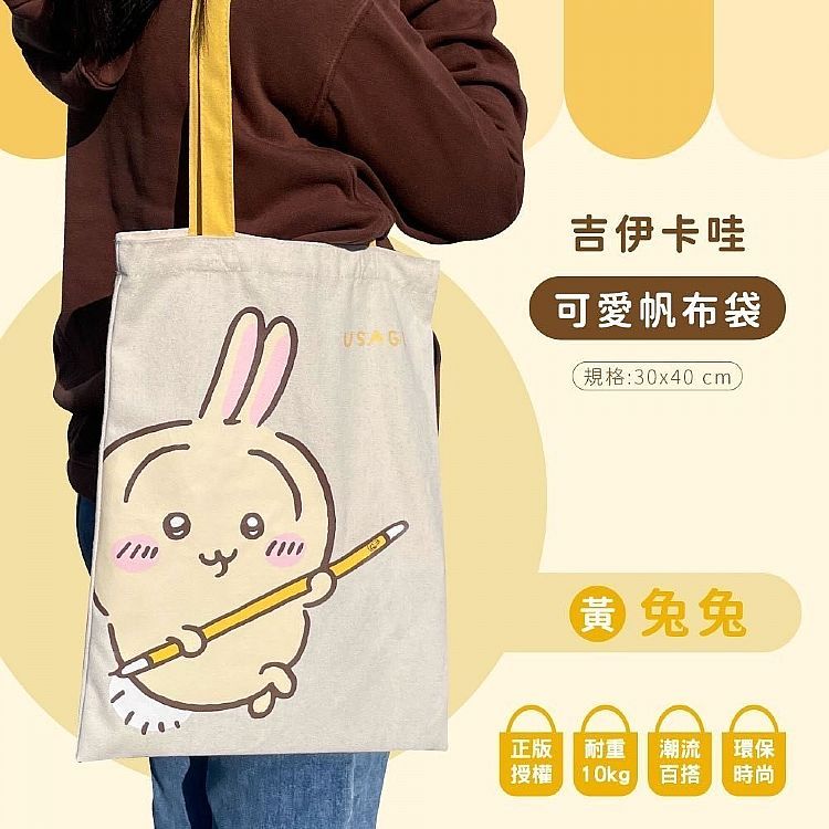 御衣坊 吉伊卡哇可愛帆布袋(1入) 款式可選 帆布袋 可愛帆布袋 吉伊卡哇 小八貓 兔兔【小三美日】DS025707粉|藍|黃小三美日