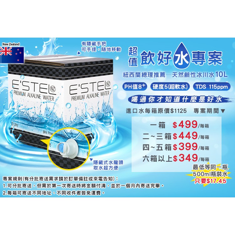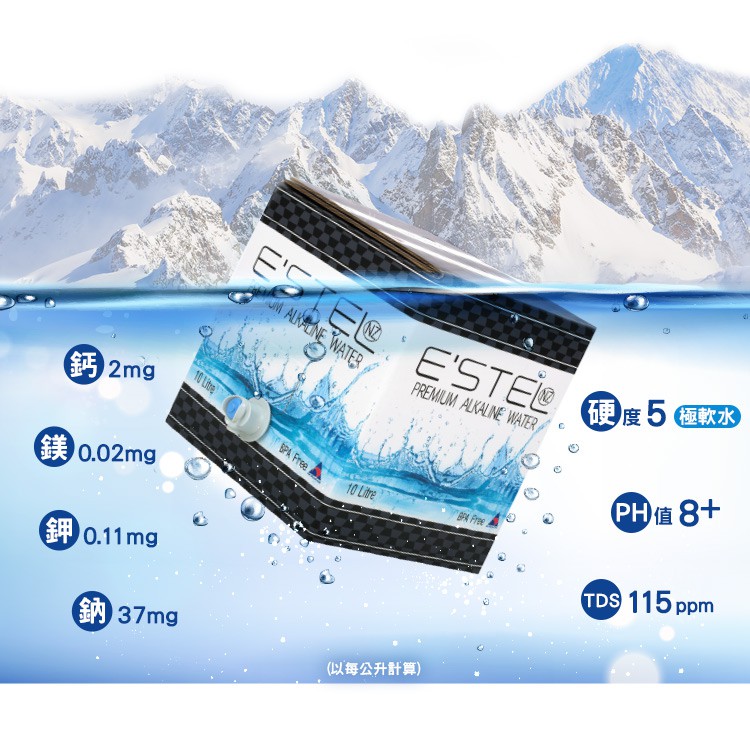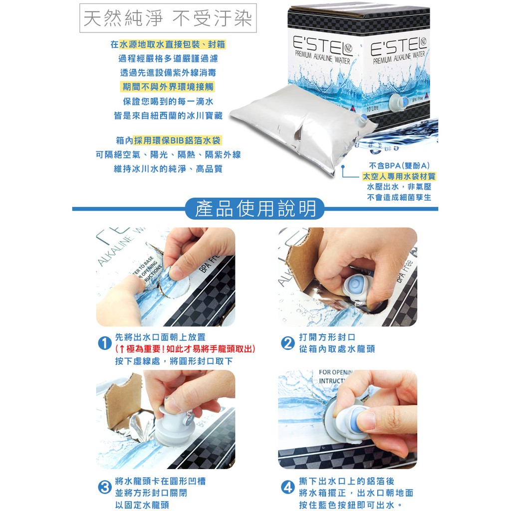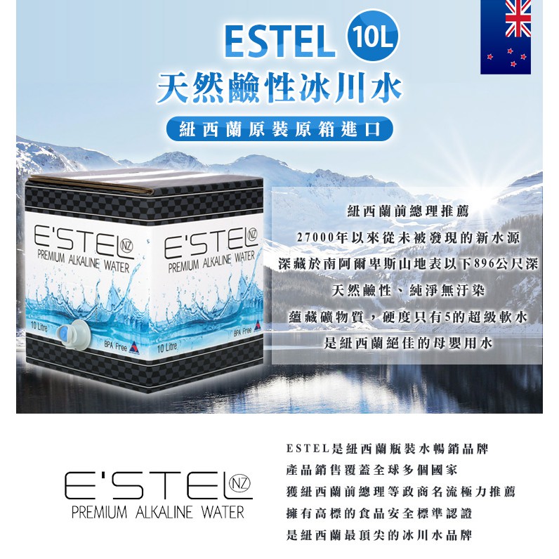 紐西蘭ESTEL天然鹼性冰川水10公升 隱藏水龍頭 可手提 最低每箱399 多用途 可分批送 日華好物天然鹼性冰川水10L 箱裝水Water日華好物 / 輕靚美7日健康週-體態管理專家