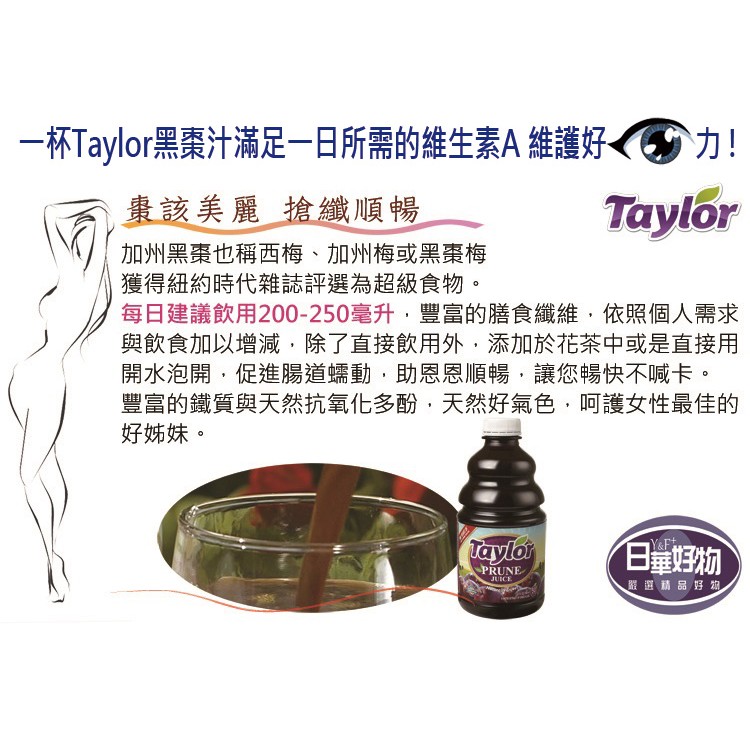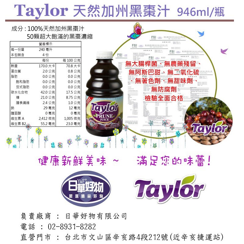 Taylor天然加州梅汁(946毫升) (超取蝦店限4瓶) 日華好物 加州梅就是加州黑棗Taylor天然加州梅汁-1入組Juice & Juice Vinegar日華好物 / 輕靚美7日健康週-體態管理專家
