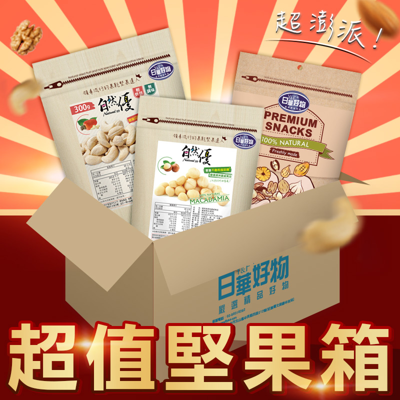 日華好物 超值堅果箱(綜合堅果230g+夏威夷豆90g+腰果300g)超值堅果箱贈草莓凍乾25g|超值堅果箱Nuts日華好物 / 輕靚美7日健康週-體態管理專家