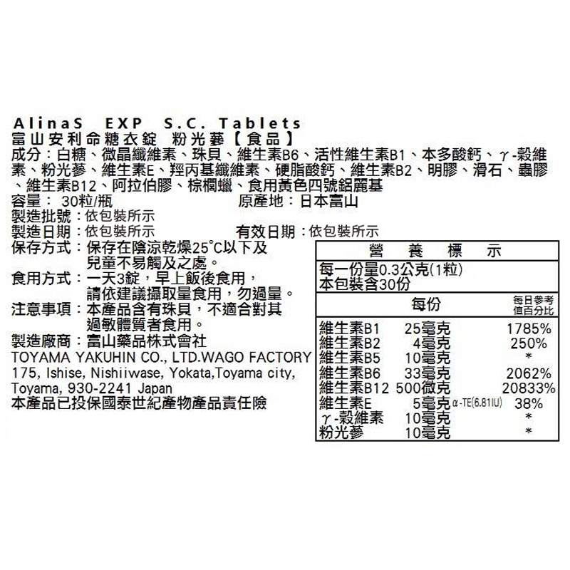 日本富山製藥 安利命EX金強效錠 30粒隨身瓶 維他命B高劑量+穀維素+粉光蔘 日華好物EX金強效錠30粒1瓶Well Being日華好物 / 輕靚美7日健康週-體態管理專家