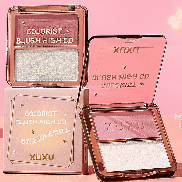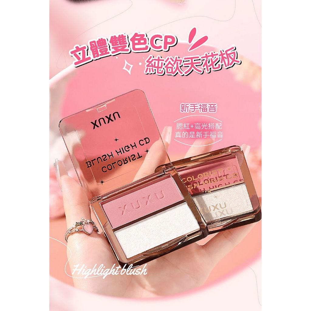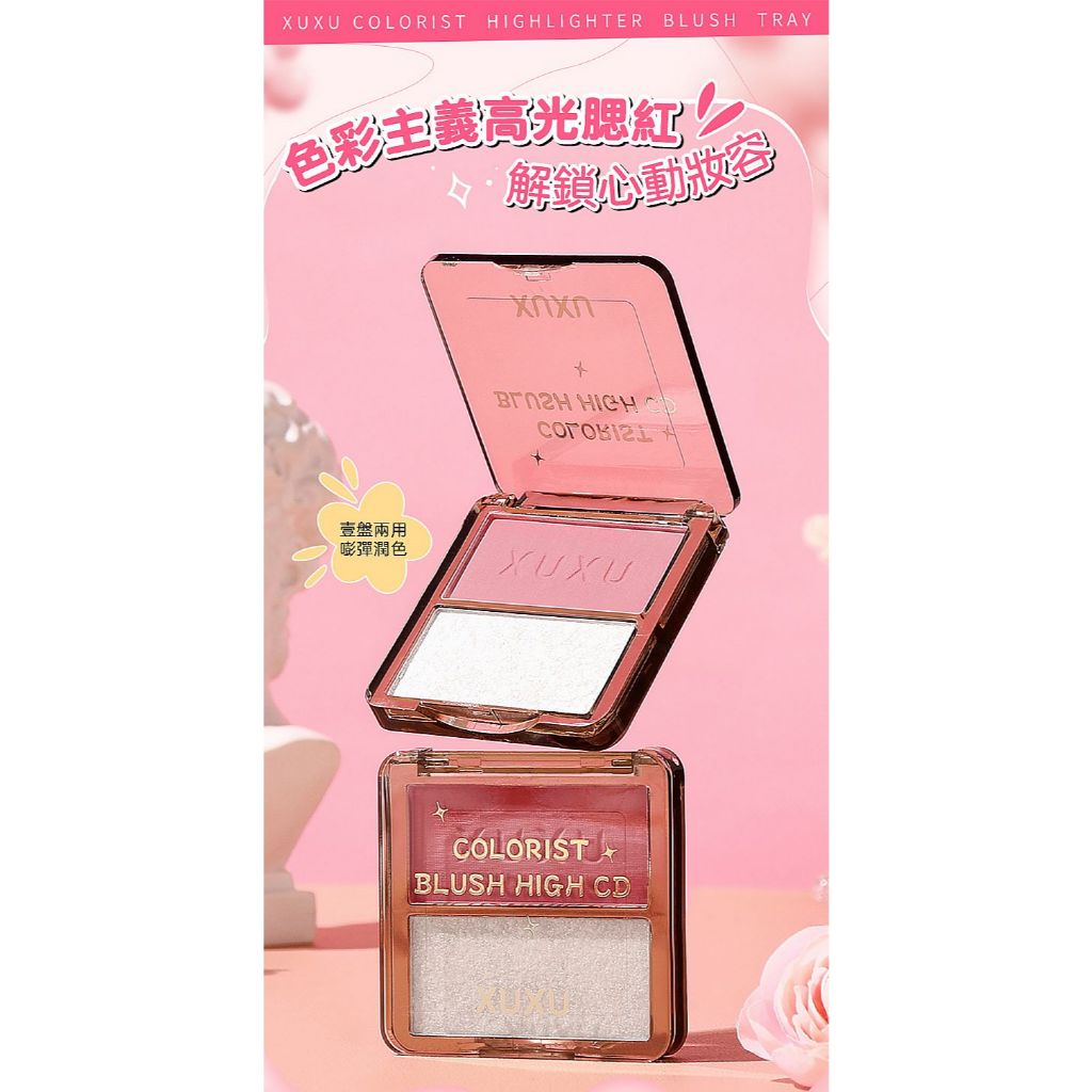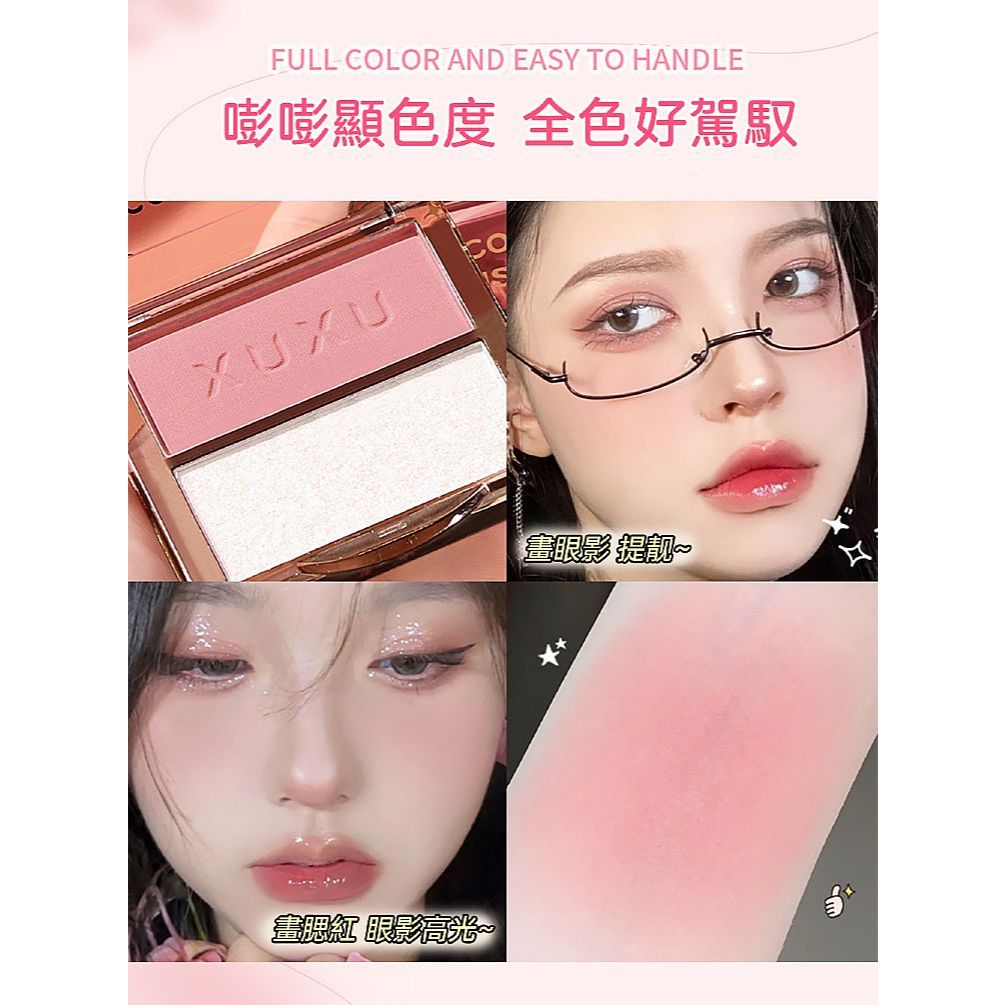 XUXU 色彩主義高光腮紅盤(01櫻花甜妹)4gx2 一盤雙色 粉質絲滑顯色 輕鬆暈染【小三美日】DS024872單一Face小三美日