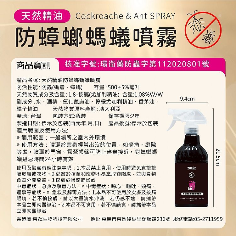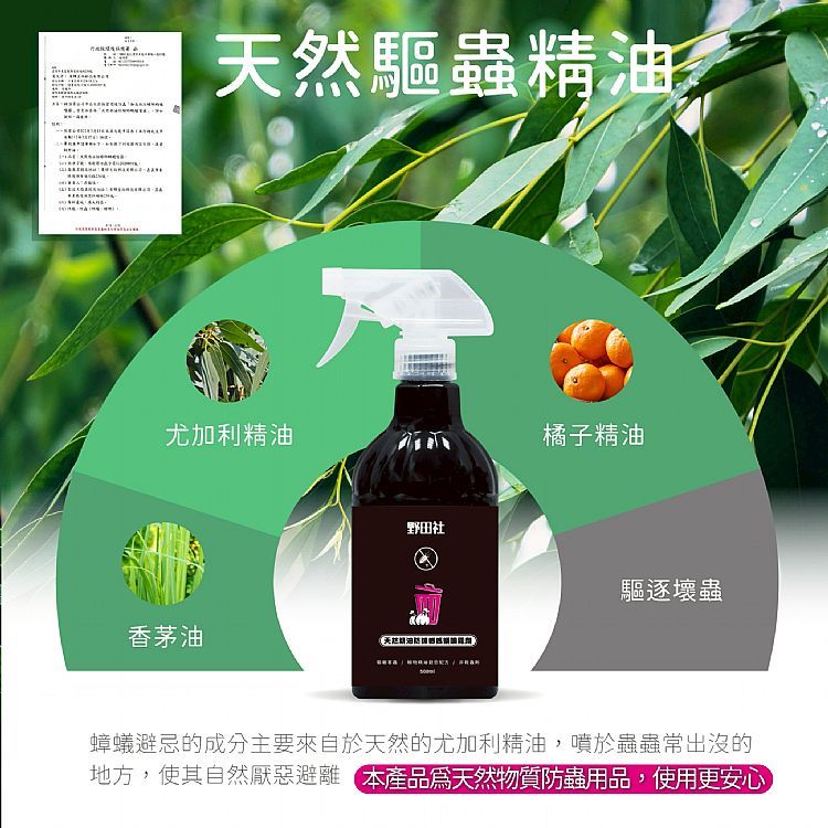 野田社 天然精油 防蟑螂 螞蟻噴霧 (500ml) 尤加利 驅蟲 蟑螂 驅螞蟻 蟑螂剋星 【小三美日】DS026168單一Pest & Weed Control小三美日