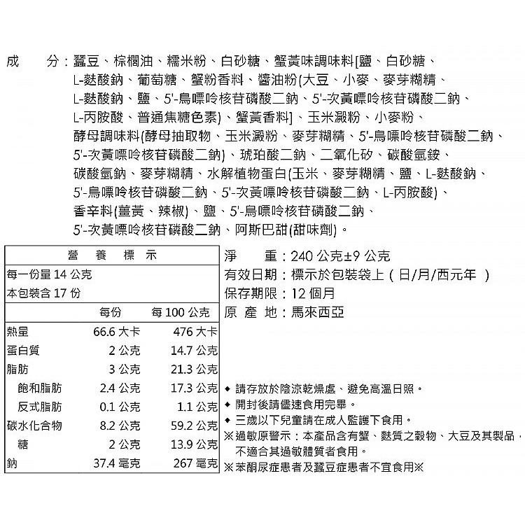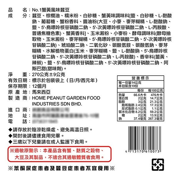 NO.1 蟹黃味蠶豆(240g)【小三美日】台灣版本 D801515單一規格Dried Snacks小三美日
