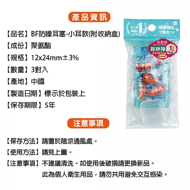 Beauty Fans 防噪耳塞(小耳款)附收納盒(3對入)【小三美日】 DS008206單一規格Ear Care小三美日