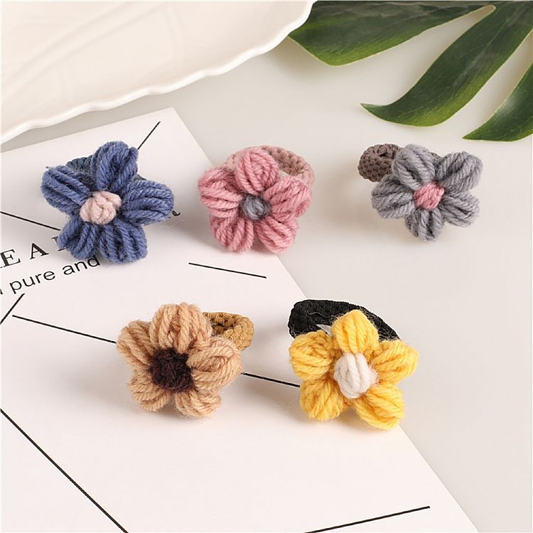 韓版毛線編織花朵髮圈(1入) 款式可選 髮飾 髮束 髮圈 造型髮圈 時尚配件 流行 快速綁髮【小三美日】DS024384藍色|黃色|粉色|咖色|灰色Hair Ties, Ribbons & Scrunchies小三美日