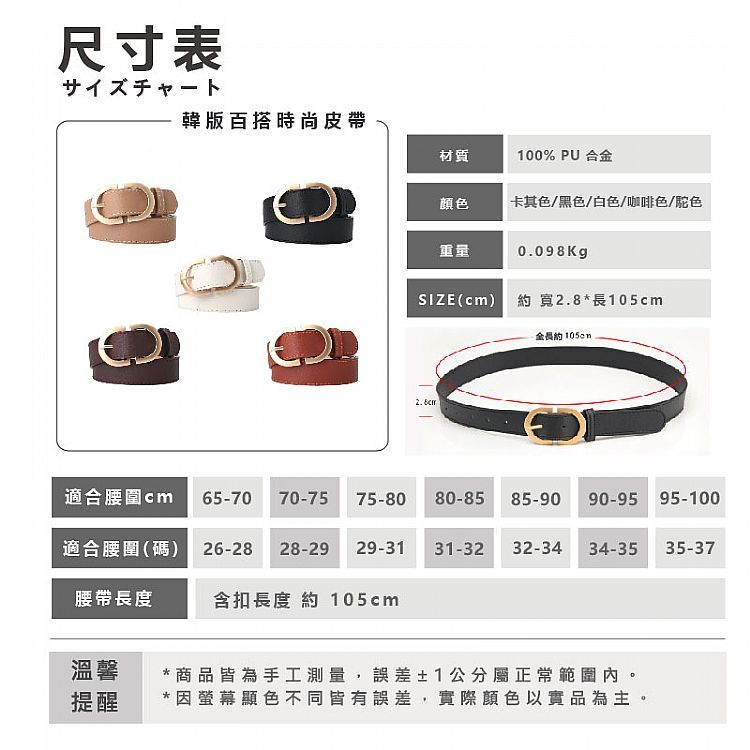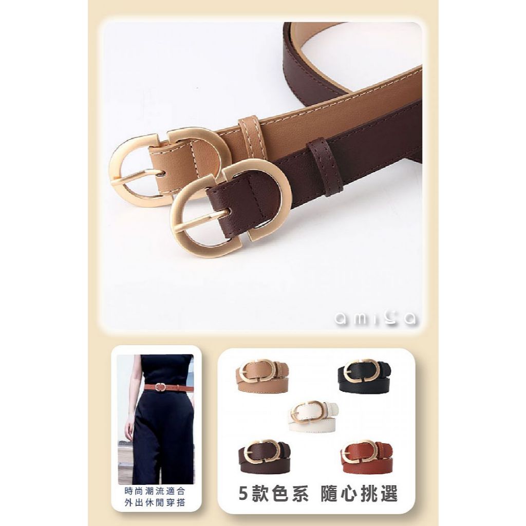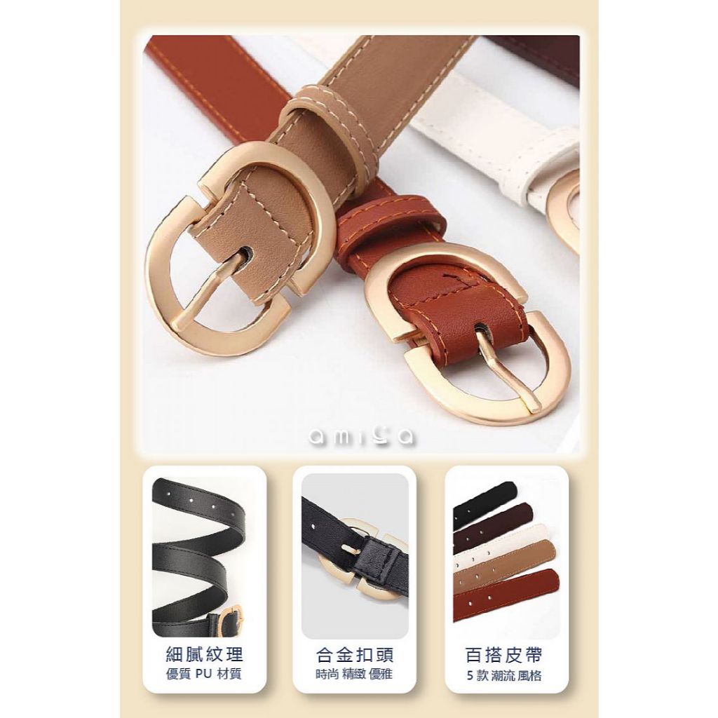 AMICA 756# 韓版 百搭 時尚 皮帶 (1入) 腰帶 素色 仿皮腰帶 金屬頭皮帶 【小三美日】DS026314卡其色|黑色|白色|咖啡色|駝色小三美日