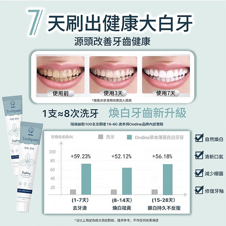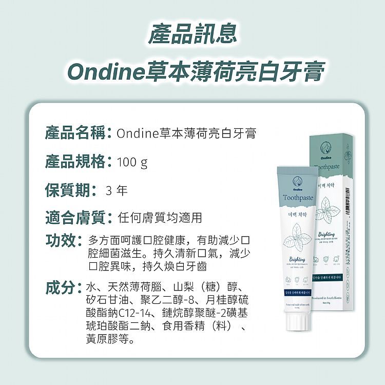 Ondine 草本薄荷亮白牙膏(100g) 牙膏 順感清涼 長效清新 口腔照護 個人照護【小三美日】DS024516單一Oral Care小三美日