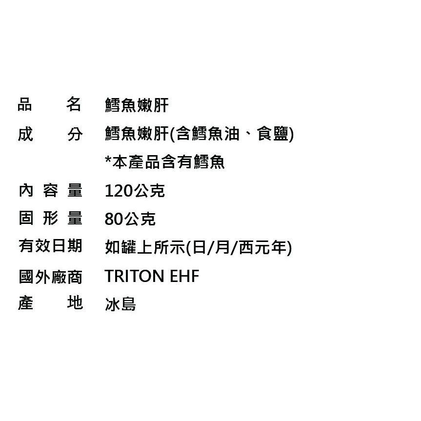 冰島TRITON 鱈魚嫩肝 (120g/罐)日料店熱賣同款|單罐組|日料店熱賣同款|10盒95折(數量下10Canned Food日初良食-窈窕輕生活的好朋友