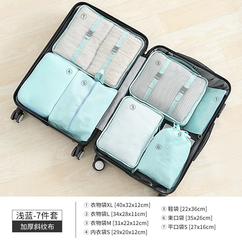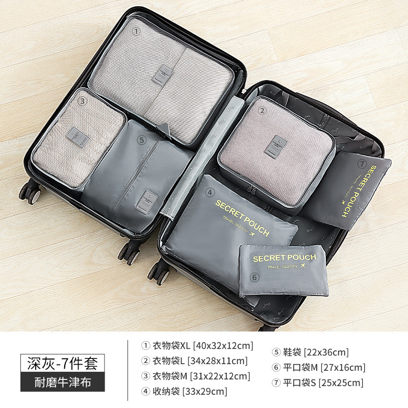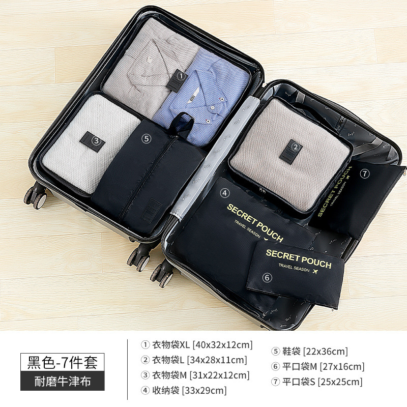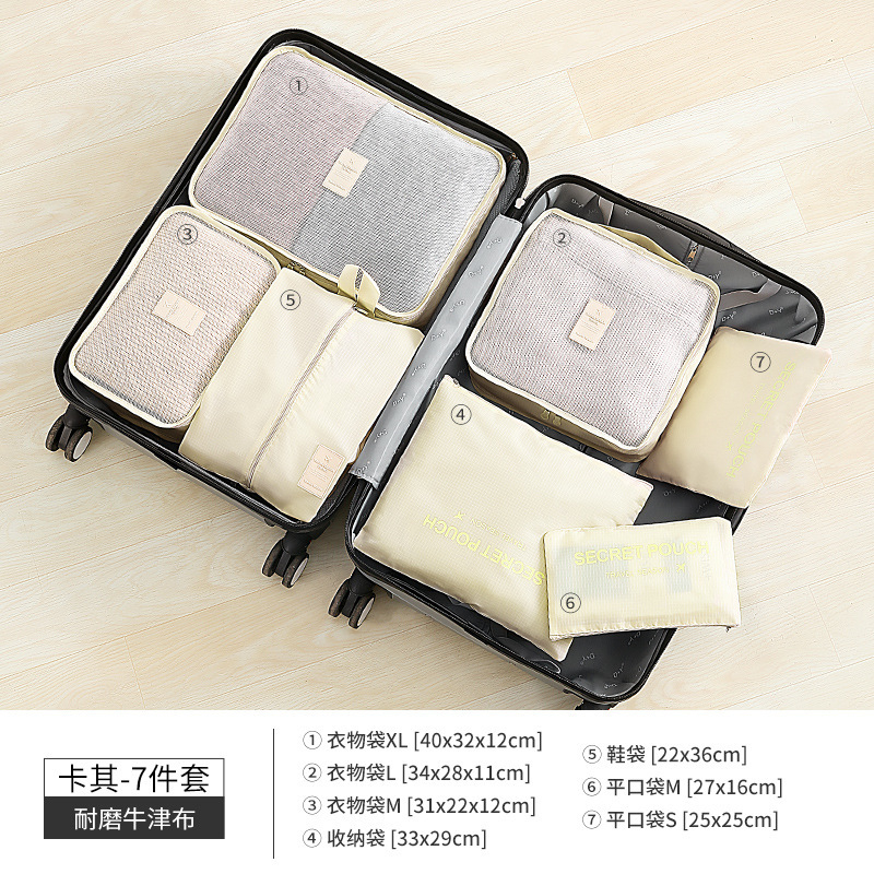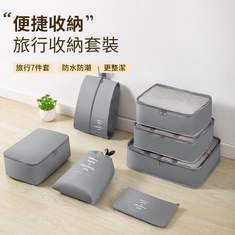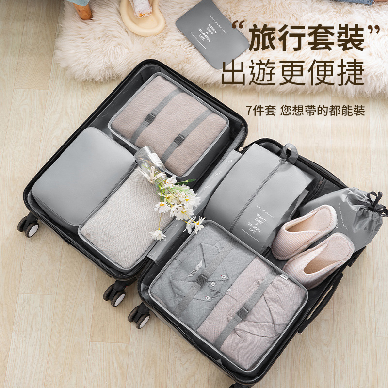 【台灣現貨】旅行收納袋七件組 旅行收納包 旅行袋 旅行包 防水牛津布 壓縮袋 收納包 束口袋 加厚款 行李收納藏青格子布|黑色斜紋布|淺灰斜紋布|淺藍斜纹布|黑色格子布|米白格子布|淺灰格子布Travel Organizers日初良食-窈窕輕生活的好朋友