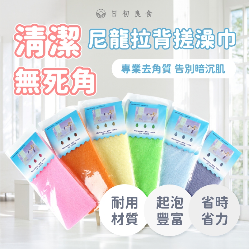 【台灣現貨】尼龍拉背搓澡巾100*30cm 洗澡巾 搓澡布 去角質巾 搓背巾 沐浴巾 搓泥 長條搓澡巾 尼龍桑拿巾 清潔粉紅100*30cm|黃色100*30cm|綠色100*30cm|藍色100*30cm|紫色100*30cmBathing Tools & Accessories日初良食-窈窕輕生活的好朋友