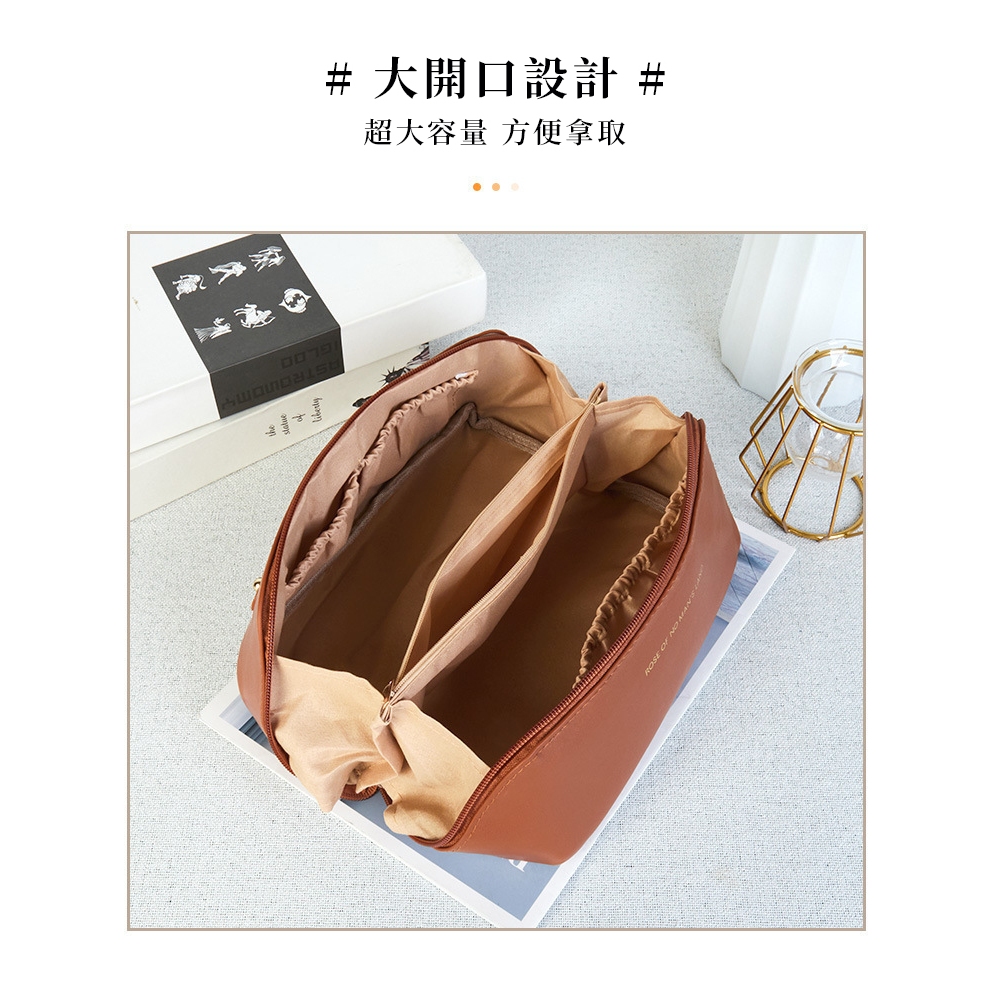【台灣現貨】皮革雲朵枕頭化妝包 旅行化妝品收納包 洗漱包 化妝包女 便攜化妝包 3C收納包 防水黑色|杏仁白|摩卡棕Makeup Accessories日初良食-窈窕輕生活的好朋友