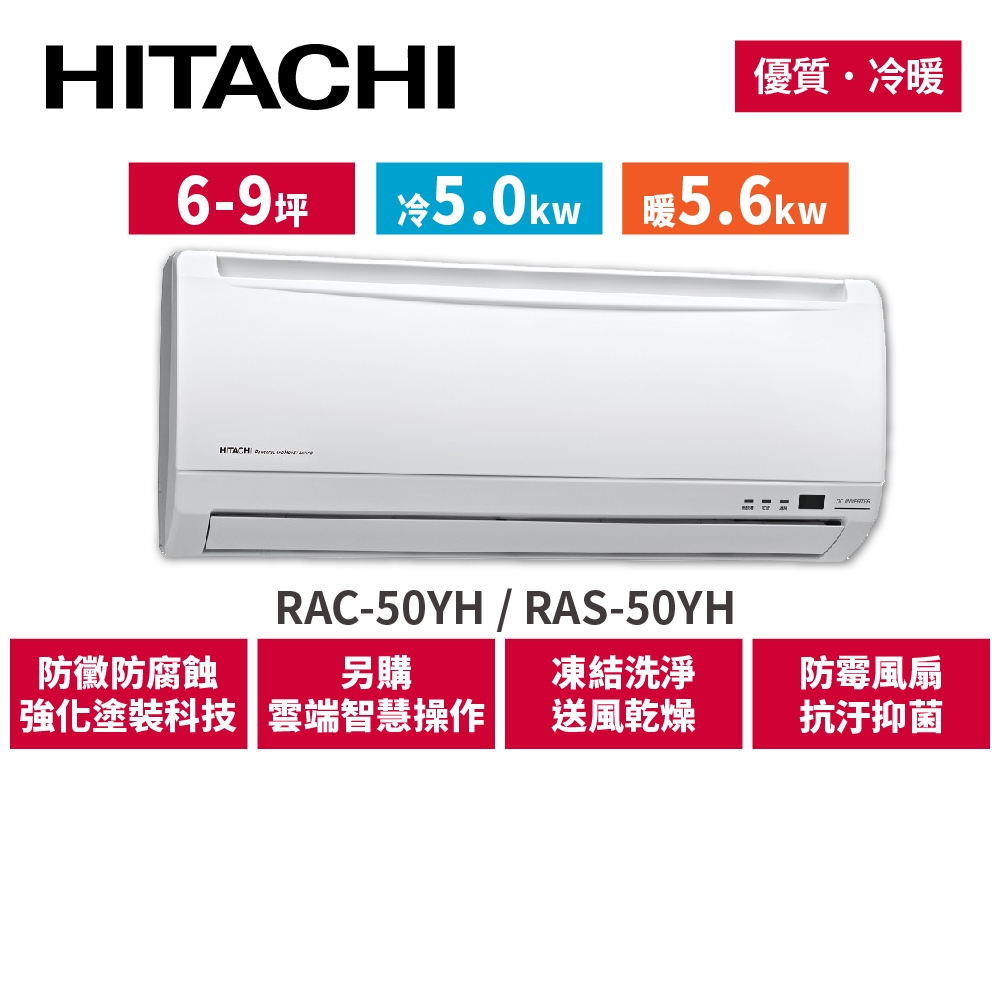 HITACHI日立 6-9坪 優質變頻冷暖 分離式冷氣 RAC-50YH_RAS-50YHHITACHI日立 6-9坪 優質變頻冷暖 分離式冷氣 RAC-50YH_RAS-50YHCooling日立嚴選館