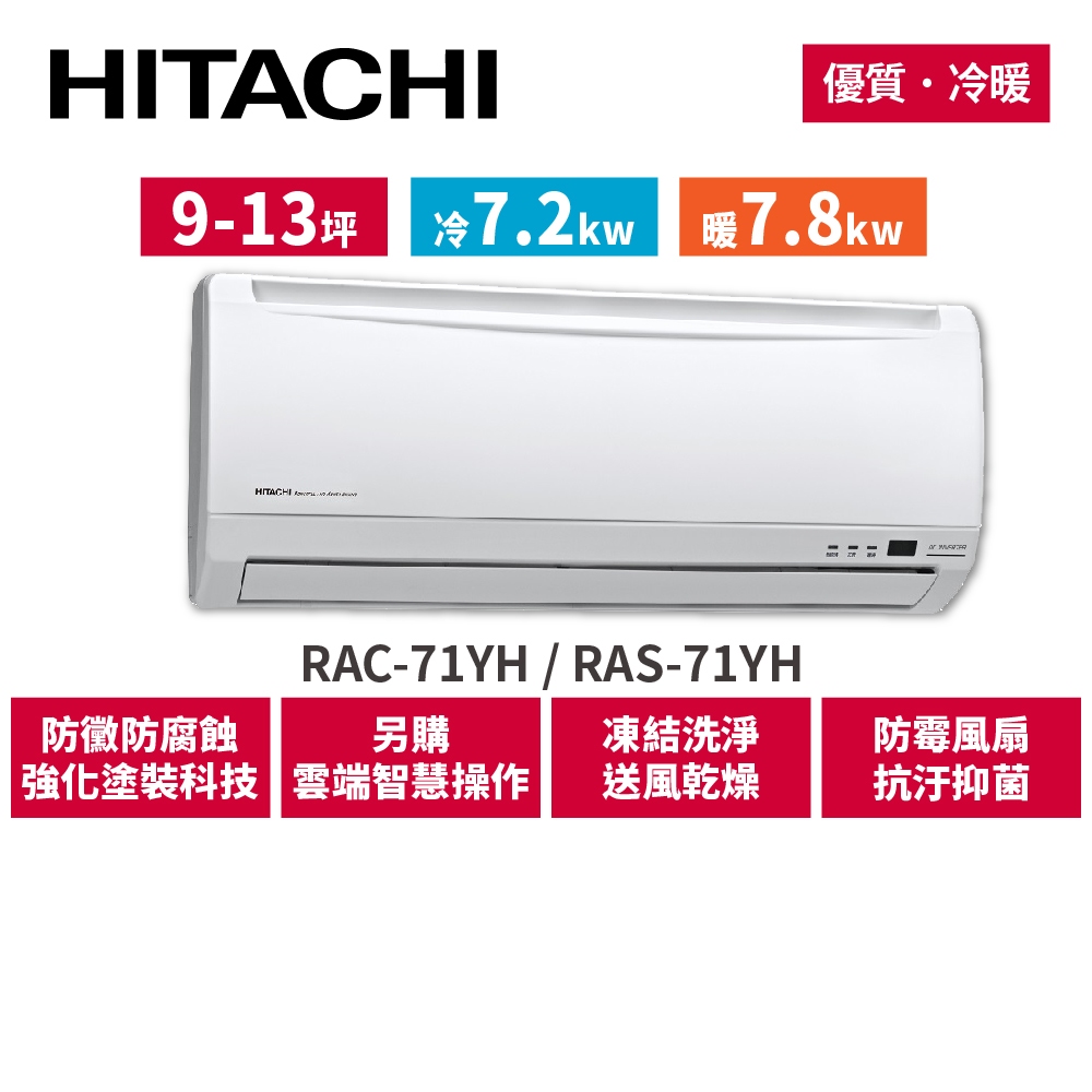 HITACHI日立 9-13坪 優質變頻冷暖 分離式冷氣 RAC-71YH_RAS-71YHHITACHI日立 9-13坪 優質變頻冷暖 分離式冷氣 RAC-71YH_RAS-71YHCooling日立嚴選館