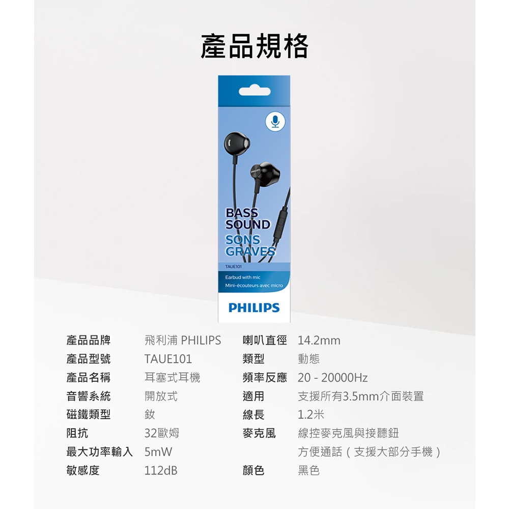 【Philips飛利浦】TAUE101BK/00 有線入耳式耳機【Philips飛利浦】TAUE101BK/00 有線入耳式耳機日本橋資訊廣場
