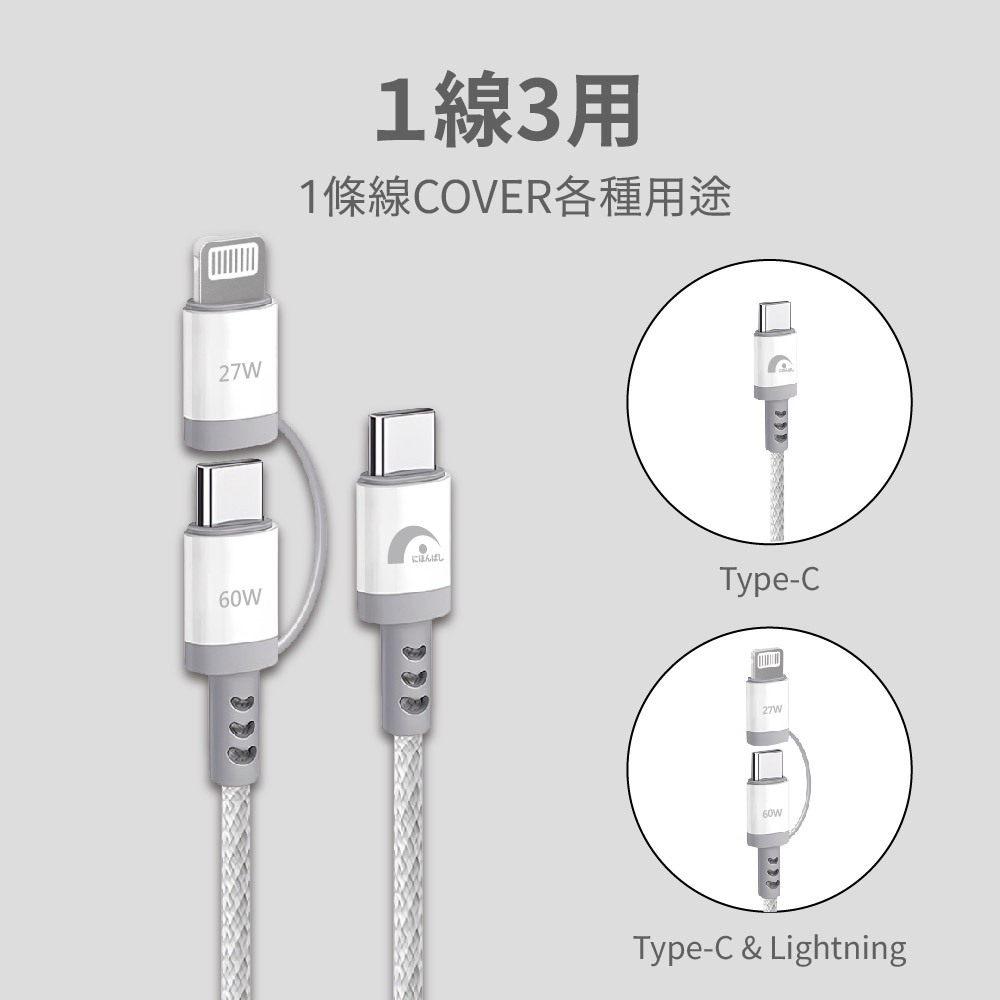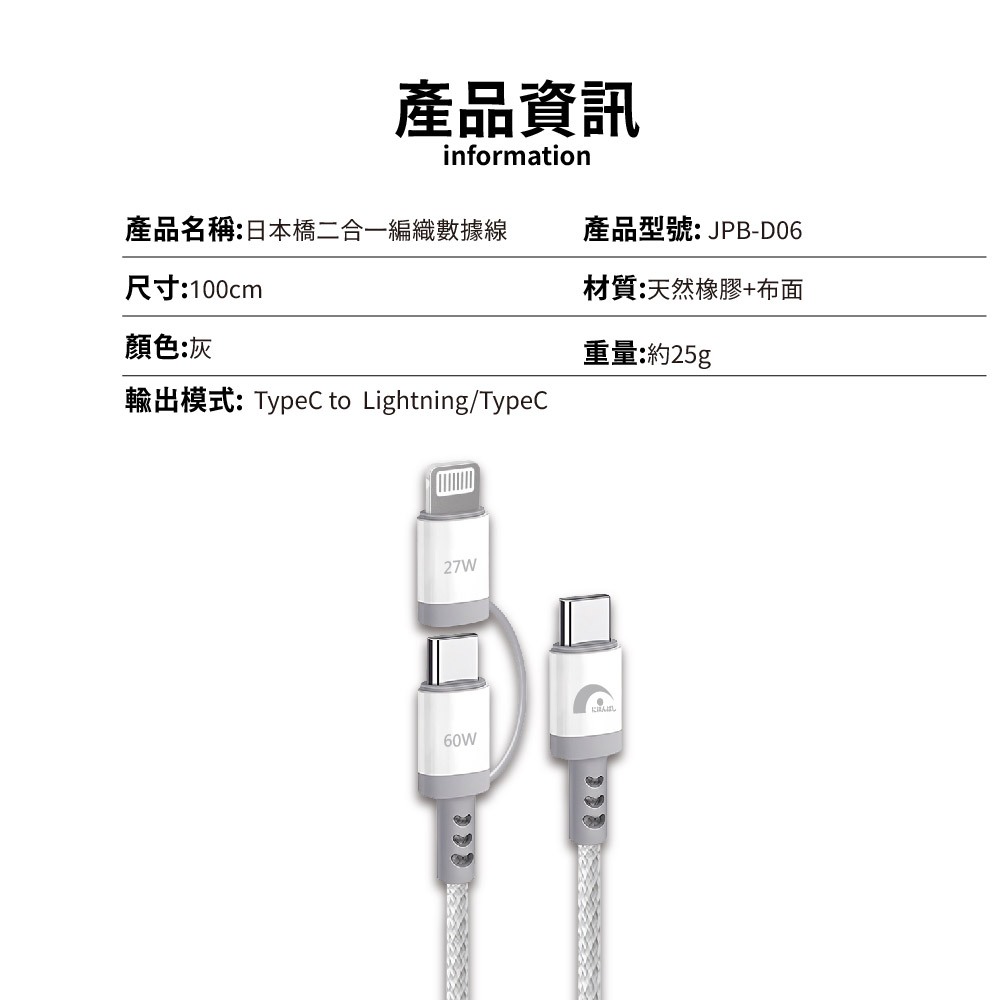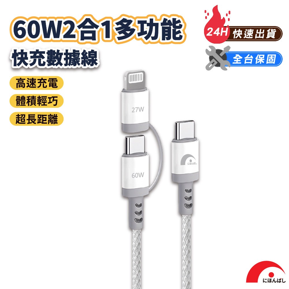 【JPB】60W二合一快充傳輸線 Type-C Lightning PD快充 充電線 數據線 快充線 適用蘋果/安卓【JPB】60W二合一快充傳輸線 Type-C Lightning PD快充 充電線 數據線 快充線 適用蘋果/安卓Cables, Chargers & Converters日本橋資訊廣場