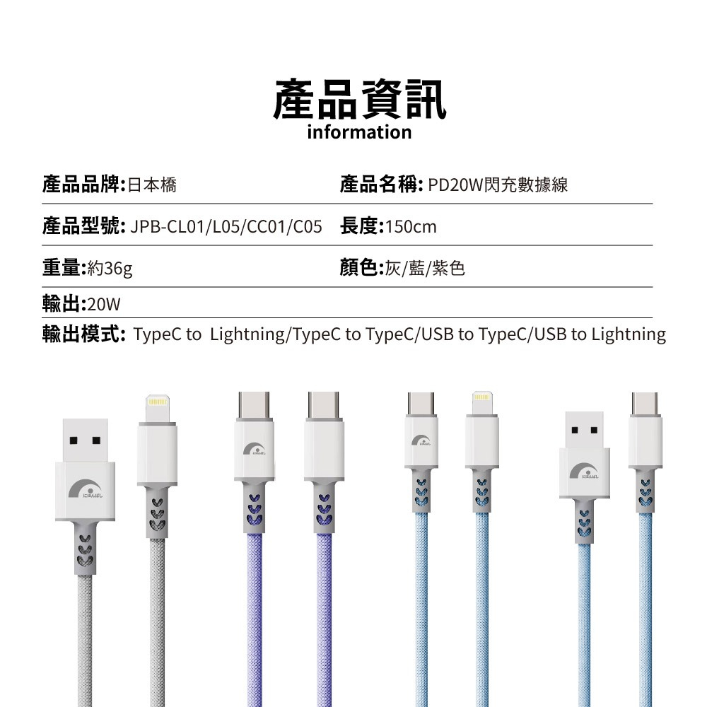 【JPB】20W快充傳輸線 1.5M Type-C Lightning PD快充 充電線 數據線 快充線 適用蘋果/安卓藍色,USB對Lightning|藍色,USB對Type-C|藍色,Type-C對Type-C 60W|藍色,Type-C對Lightning 20W|灰色,USB對Lightning|灰色,USB對Type-C|灰色,Type-C對Type-C 60W|灰色,Type-C對Lightning 20W|紫色,USB對Lightning|紫色,USB對Type-C|紫色,Type-C對Type-C 60W|紫色,Type-C對Lightning 20WCables, Chargers & Converters日本橋資訊廣場