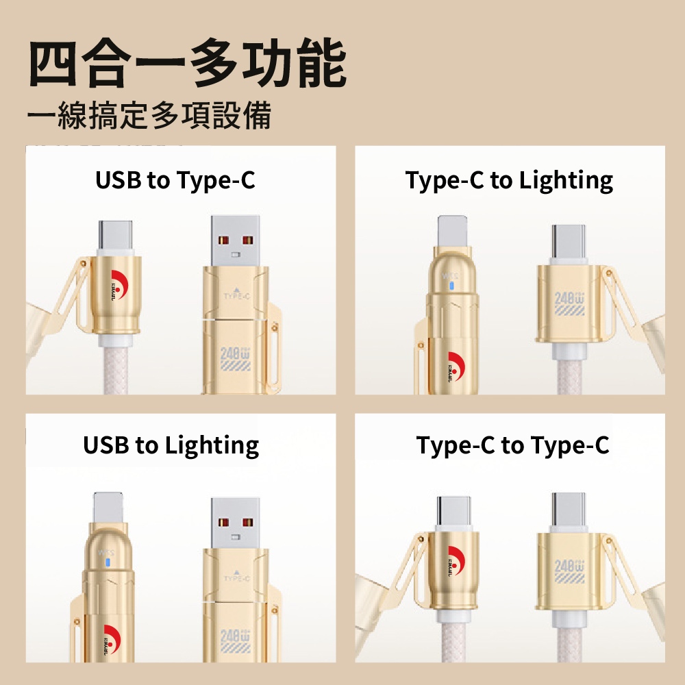 【JPB】四合一機甲數據線 240W快充傳輸線1.2M Type-C Lightning PD快充 充電線 數據線藏青藍|金色Cables, Chargers & Converters日本橋資訊廣場