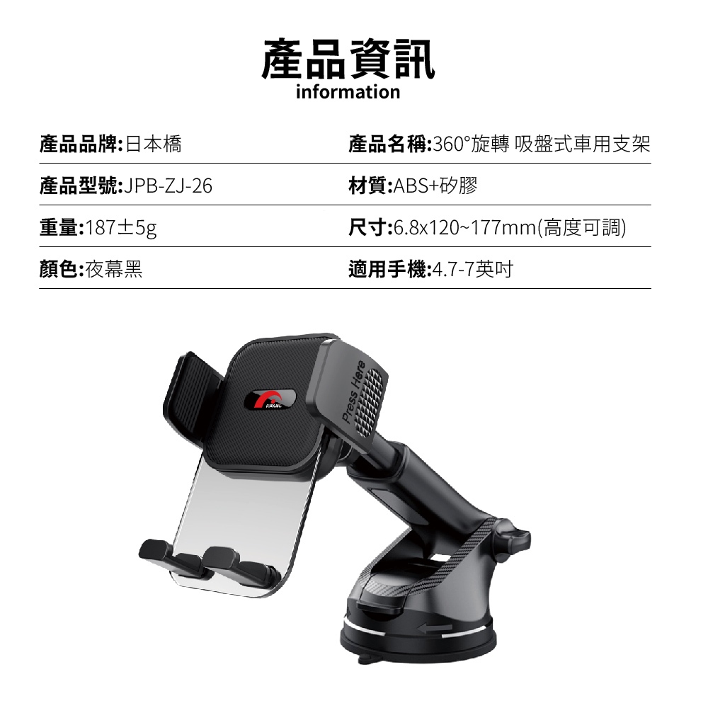【JBP】360度旋轉 吸盤式車用支架 ZJ-26 車載出風口支架 手機支架 汽車支架【JBP】360度旋轉 吸盤式車用支架 ZJ-26 車載出風口支架 手機支架 汽車支架Phone Holders日本橋資訊廣場