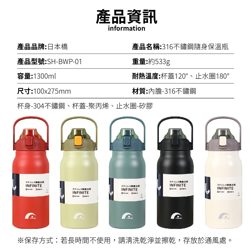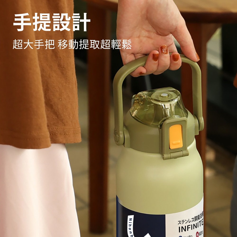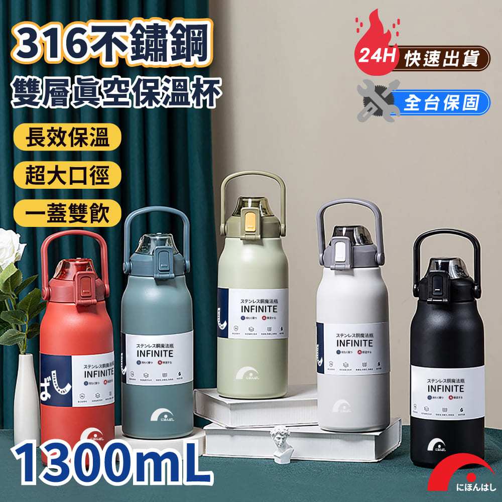【JPB】316不鏽鋼 大容量手提保溫隨行杯 附吸管 1300ml 隨身杯 水壺 保溫杯 現貨 不銹鋼保溫瓶曜石黑|湖水藍|牛奶白|橄欖綠|夕陽紅Water Bottles & Accessories日本橋資訊廣場