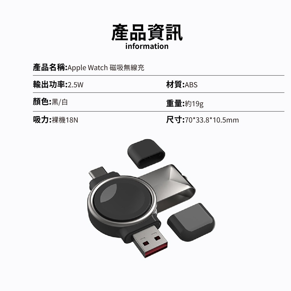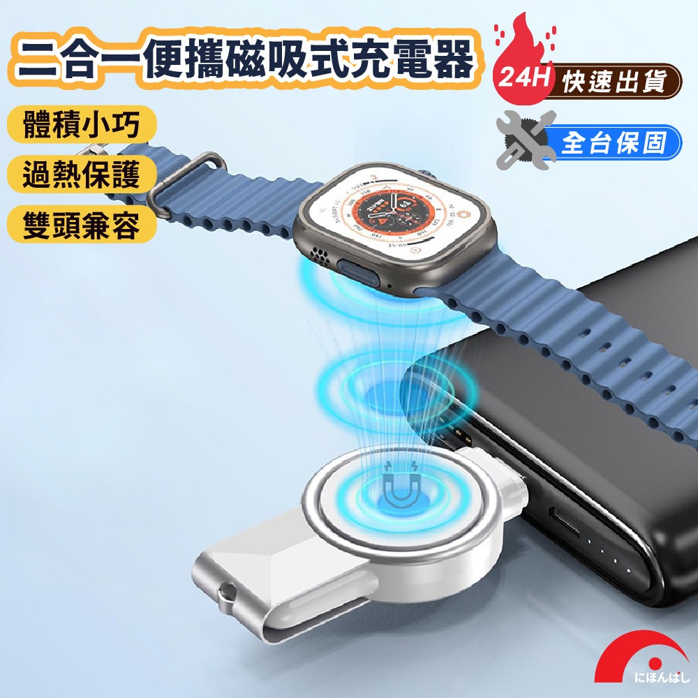 【JPB】Apple Watch 二合一便攜式磁吸充電線 Type-C USB 9 8 7 6 Ultra充電器 充電黑色|白色Wearable Accessories日本橋資訊廣場