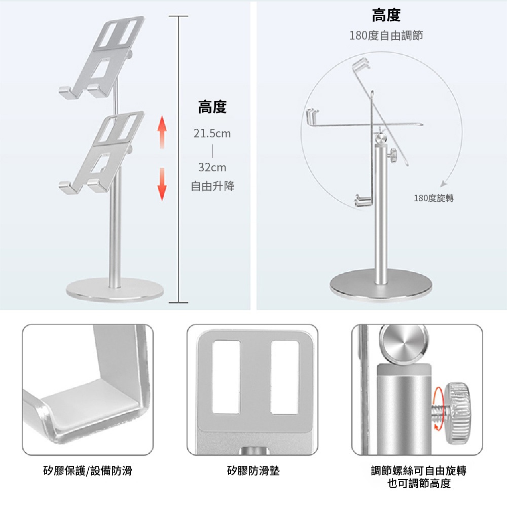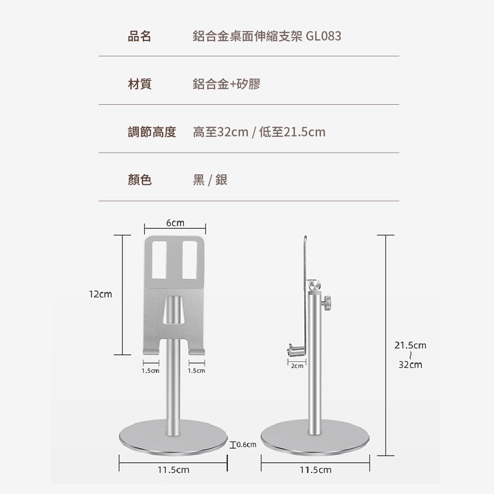 【JPB】支架 金屬桌面伸縮手機支架 GL083 懶人支架 自由升降 180度旋轉 防滑黑色|銀色Selfie Accessories日本橋資訊廣場