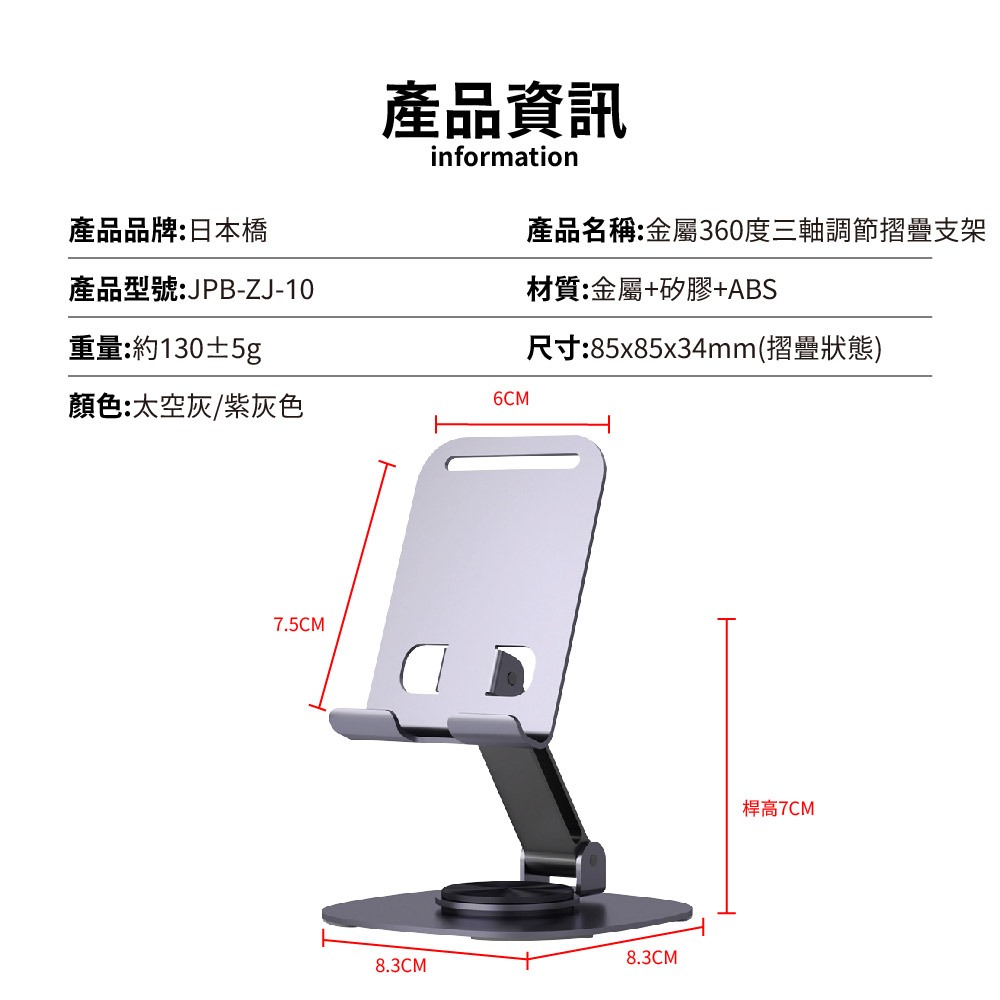 【JPB】360度金屬三軸摺疊手機支架 手機支架 平板支架 旋轉支架 ZJ-10隨機出貨|太空灰|霧灰紫Phone Grips日本橋資訊廣場