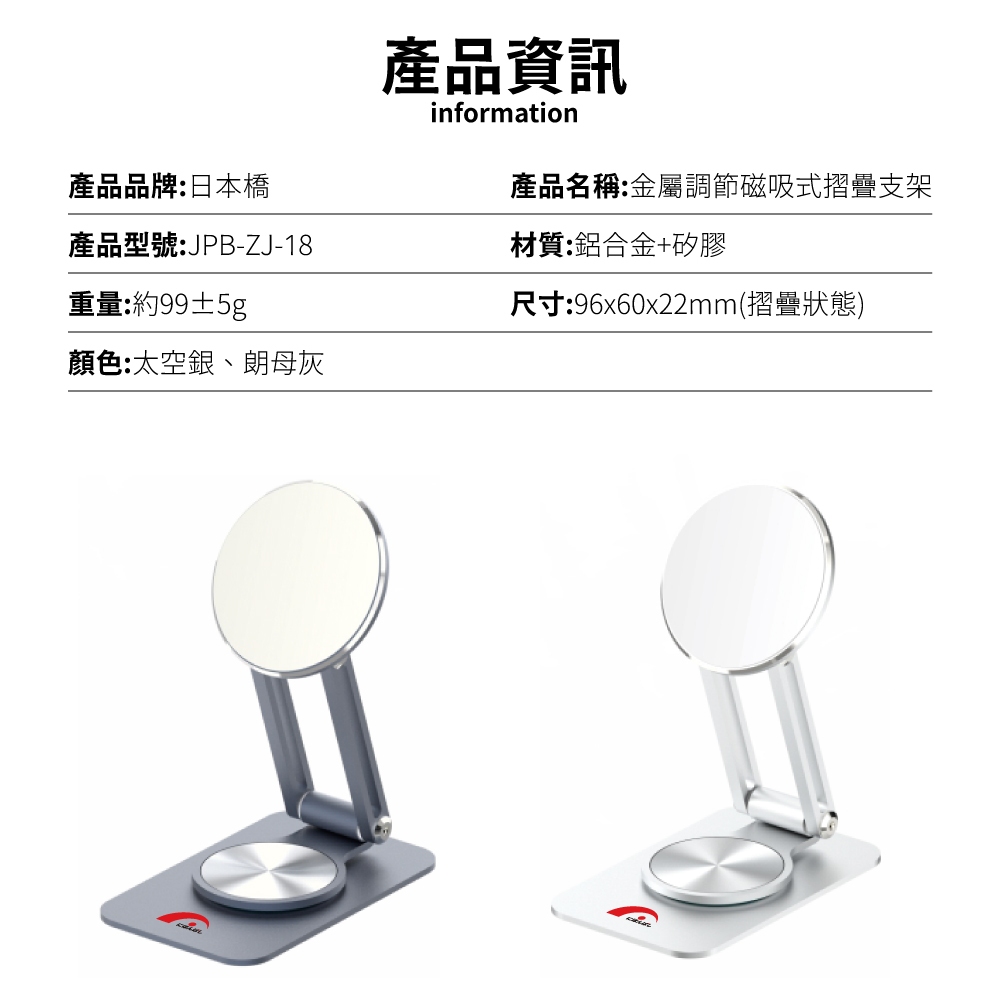 現貨【JPB】Magsafe磁吸金屬旋轉手機支架 手機支架 磁吸支架 摺疊支架 支架 旋轉支架銀色|太空灰Phone Grips日本橋資訊廣場