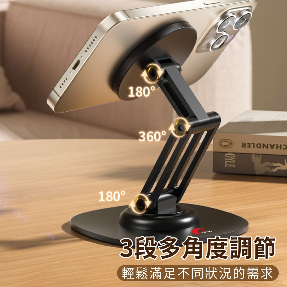 【JPB】360°磁吸摺疊 旋轉支架 MagSafe 手機支架 平板支架 (附磁吸環) 鋁合金 懶人支架 手機架黑色|白色Phone Grips日本橋資訊廣場