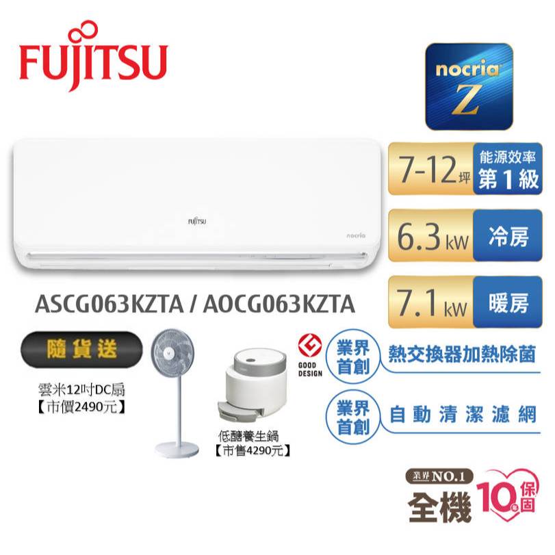 Fujitsu富士通 7-12坪變頻冷暖nocria Z系列AOCG063KZTA+ASCG063KZTAFujitsu富士通 7-12坪變頻冷暖nocria Z系列AOCG063KZTA+ASCG063KZTACooling日本富士通Fujitsu空調旗艦館
