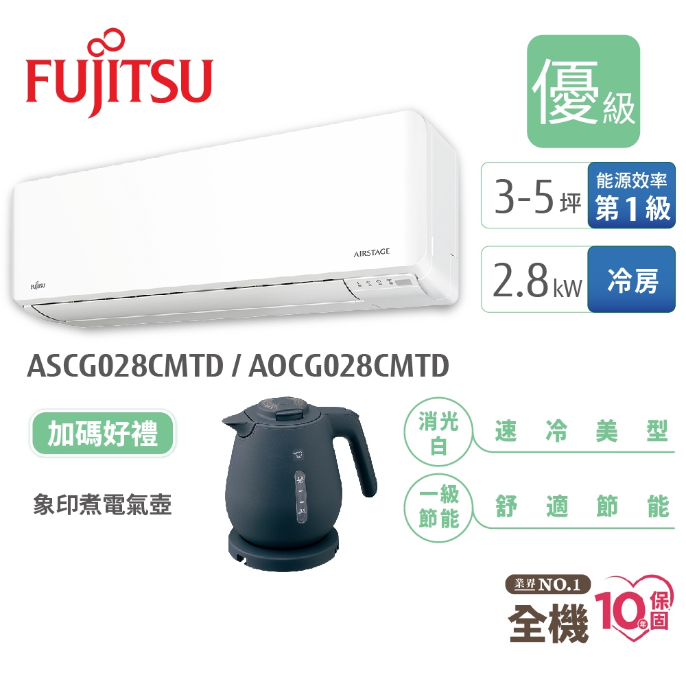 Fujitsu富士通 3-5坪變頻空調(新優級系列-冷專) ASCG028CMTD+AOCG028CMTDFujitsu富士通 3-5坪變頻空調(新優級系列-冷專) ASCG028CMTD+AOCG028CMTDCooling日本富士通Fujitsu空調旗艦館