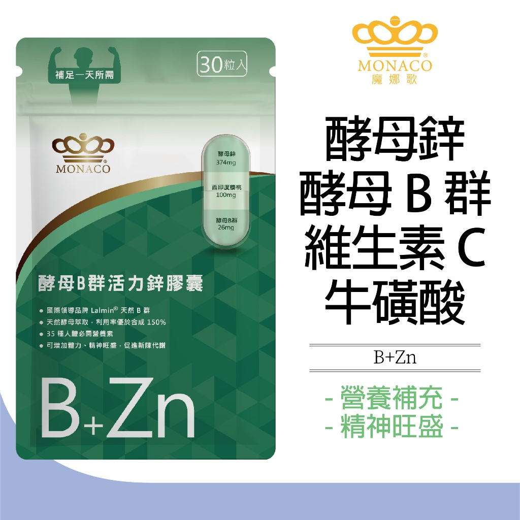魔娜歌 MONACO 酵母B群活力鋅膠囊 (30顆/包) 酵母鋅30顆/包(15天份)|【體驗包】6顆/包(3天份)Well Being日本商 魔娜歌|乳清蛋白 保健食品
