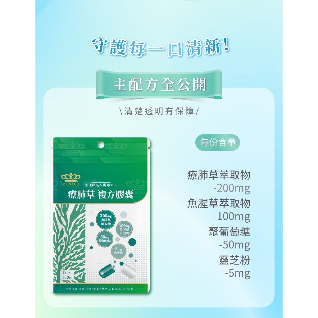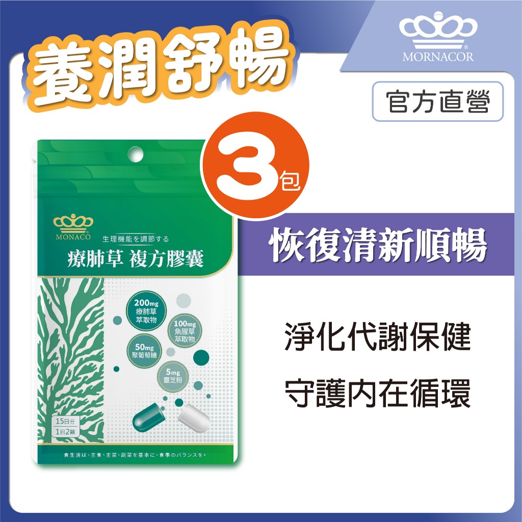 隔日到 日本商 魔娜歌 療肺草 複方膠囊|30入 3包組|舒潤植方|魚腥草×酵母聚葡萄糖×靈芝×牛磺酸×薄荷×桑葉30顆/包|【體驗包】6顆/包|30顆/包-3包組|30顆/包-5包組|【隨機試用品】1顆Well Being日本商 魔娜歌|乳清蛋白 保健食品